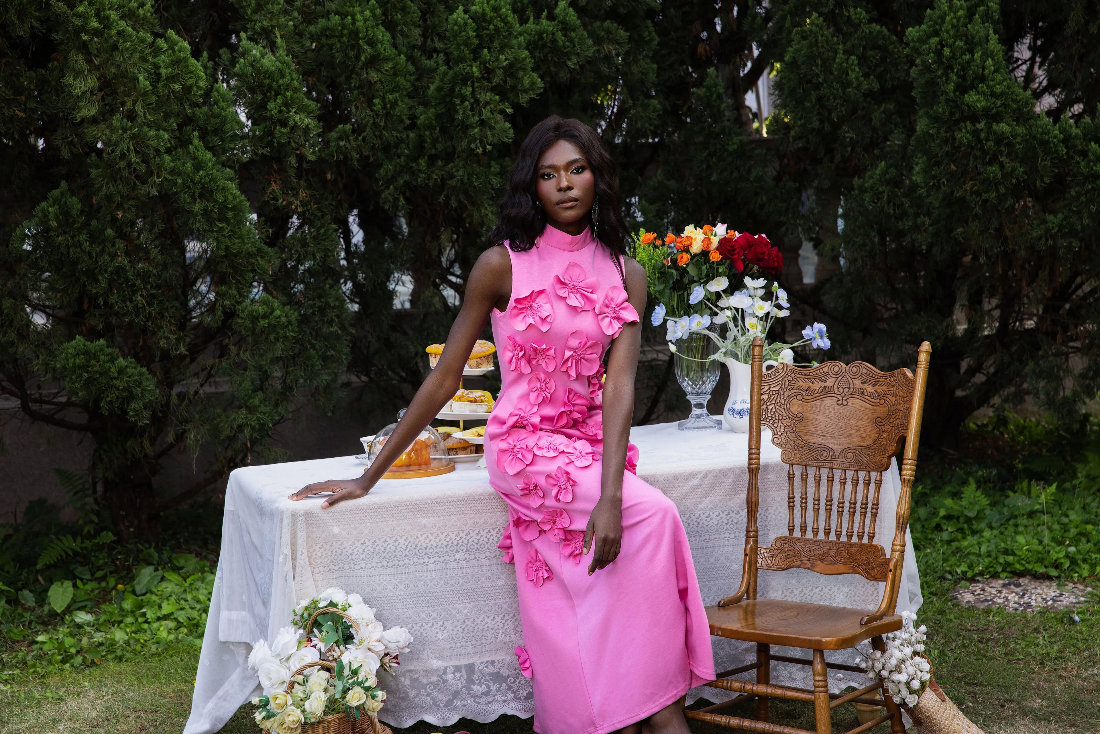 Elegant Ease Satin Printed Tie-Waist Midi Dress