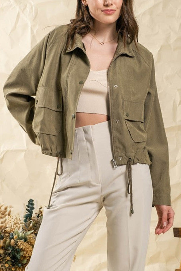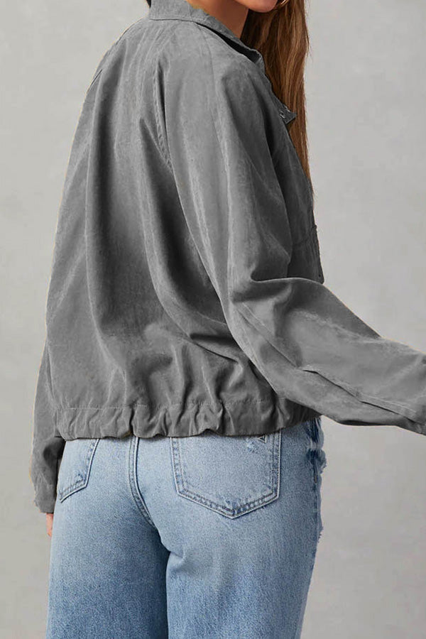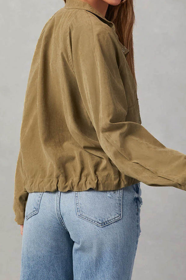 Brushed plaid lapel multi-button two-pocket midi jacket